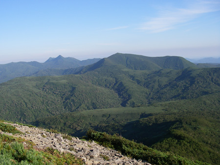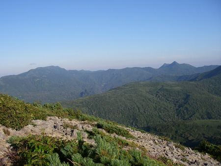 右から浜益岳、群別岳、尾白利加