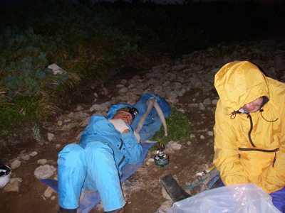 こんな事は想定してなかったので、行動食、僅かな水に雨具のみ貧相なビバーク。