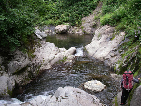 寿都幌別川をコンパクトにした感じか、知来岳滝ノ沢右股の函滝の数を倍以上にして悪さも倍以上にした感じが近いかな?