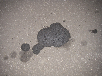 明日土曜日は新増毛山道の「新」の部分の草刈りなので夕方に出発しようと思って、車のエンジンをかけて荷物を積んでいると、車の下から何やらポタポタと........。