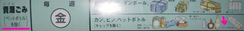 左端の太く資源ごみと書かれている下に「ペットボトルは除く」と書いてあります。
