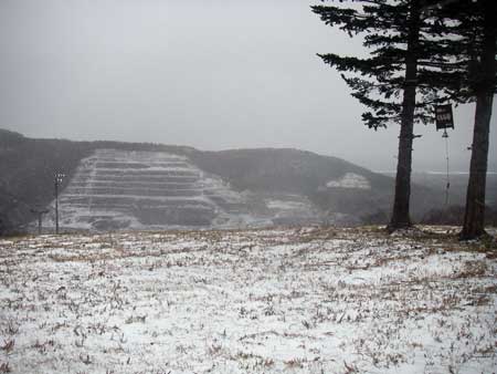 引き返し時を逸してしまったが、道路が下りに入ると予想通り雪はほとんどなかった。