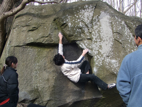 山に岩場探しか里でボルダリングが迷った挙げ句、天候に負けて里でボルダリング。