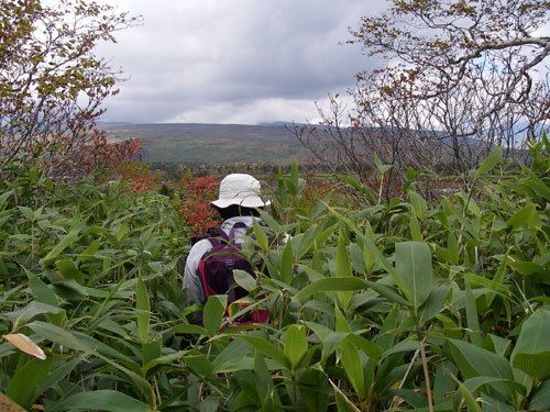 大沼で休憩していると人の声がするなと思ったら、測量の棒を持ったおじさんが薮を漕いでいました。