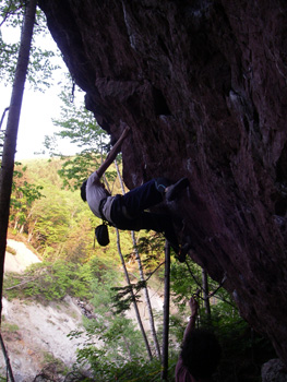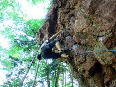 武好橋から岩老側に歩いて赤いザイルがフィックスしてある斜面を過ぎると、まもなく岩老分岐で、右は岩老、左は雄冬山に向かいますが、左へ入って林道に出て雄冬山でも眺めながら昼ご飯にしようと歩いてみたら、5分ほど進んだ所で草刈りは終わっていて林道には出られず。
