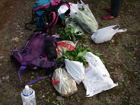 そんな山道上は行者ニンニク、ウド、タケノコがそこかしこに生えていて、ヤブに突入する事無く山道をただ歩いていれば山菜を足下でゲットできる幸せな状態。